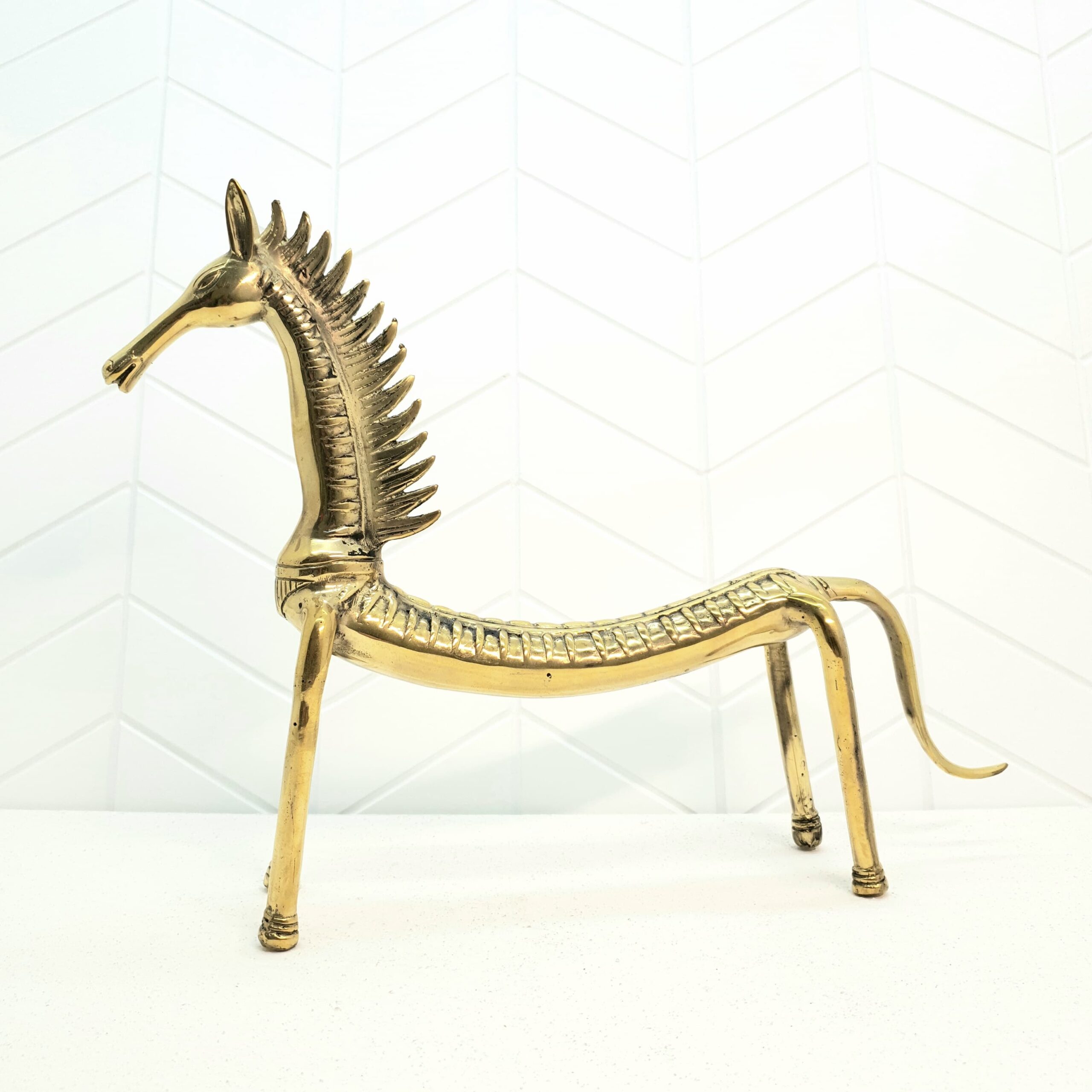 Embrace the dynamic beauty of modern design with our Contemporary Horse Sculpture, meticulously crafted from bronze and finished with a sleek gold color. This sculpture captures the essence of movement and grace, reimagining the timeless elegance of the horse in a striking, minimalist form. The clean lines and bold silhouette reflect the mastery of modern craftsmanship, making this piece a standout addition to any art lover’s collection.