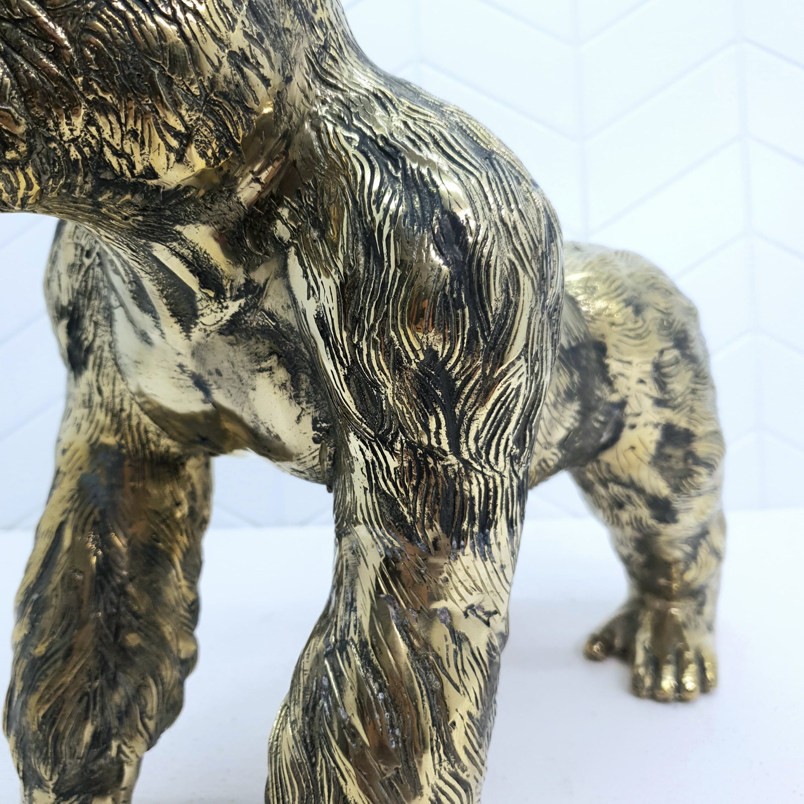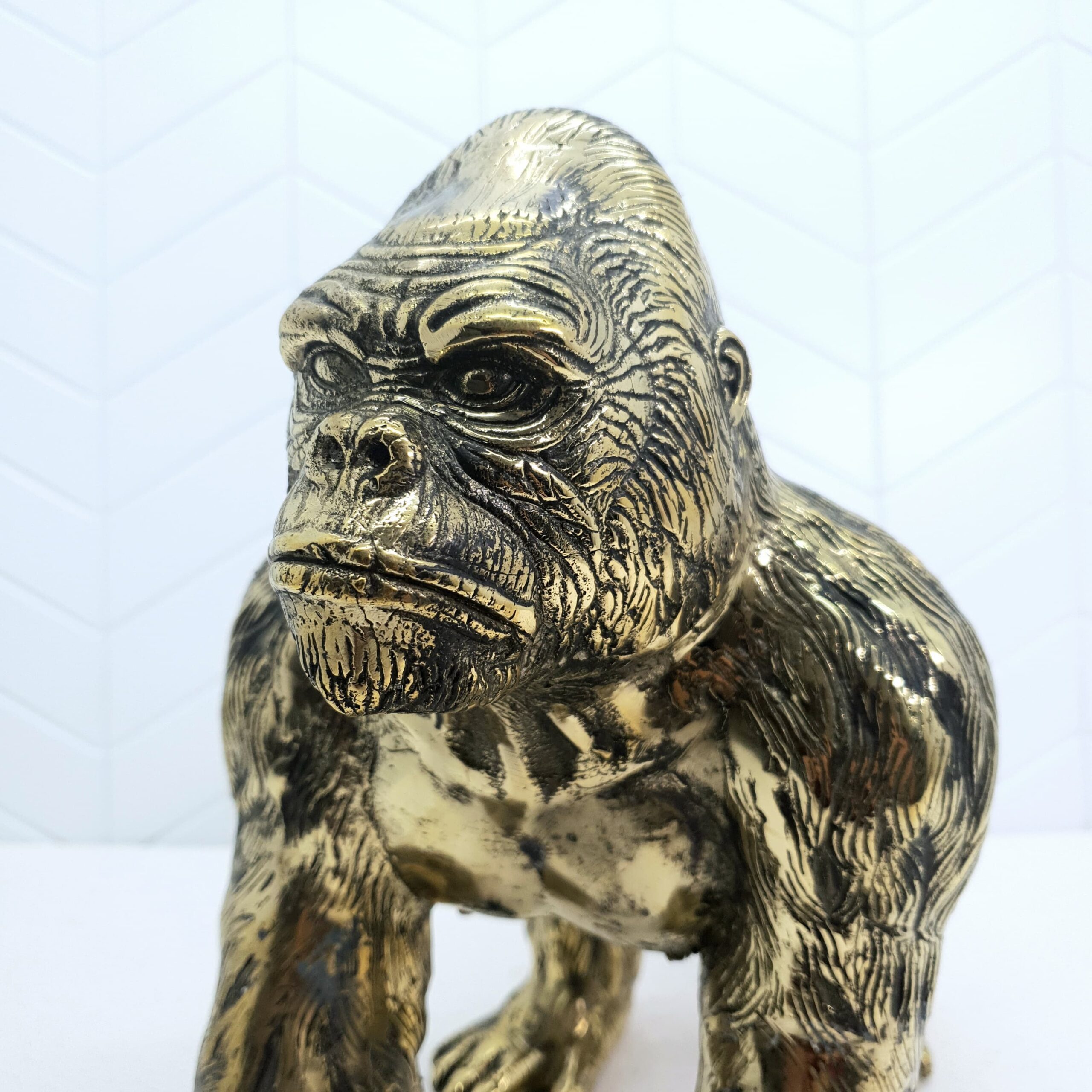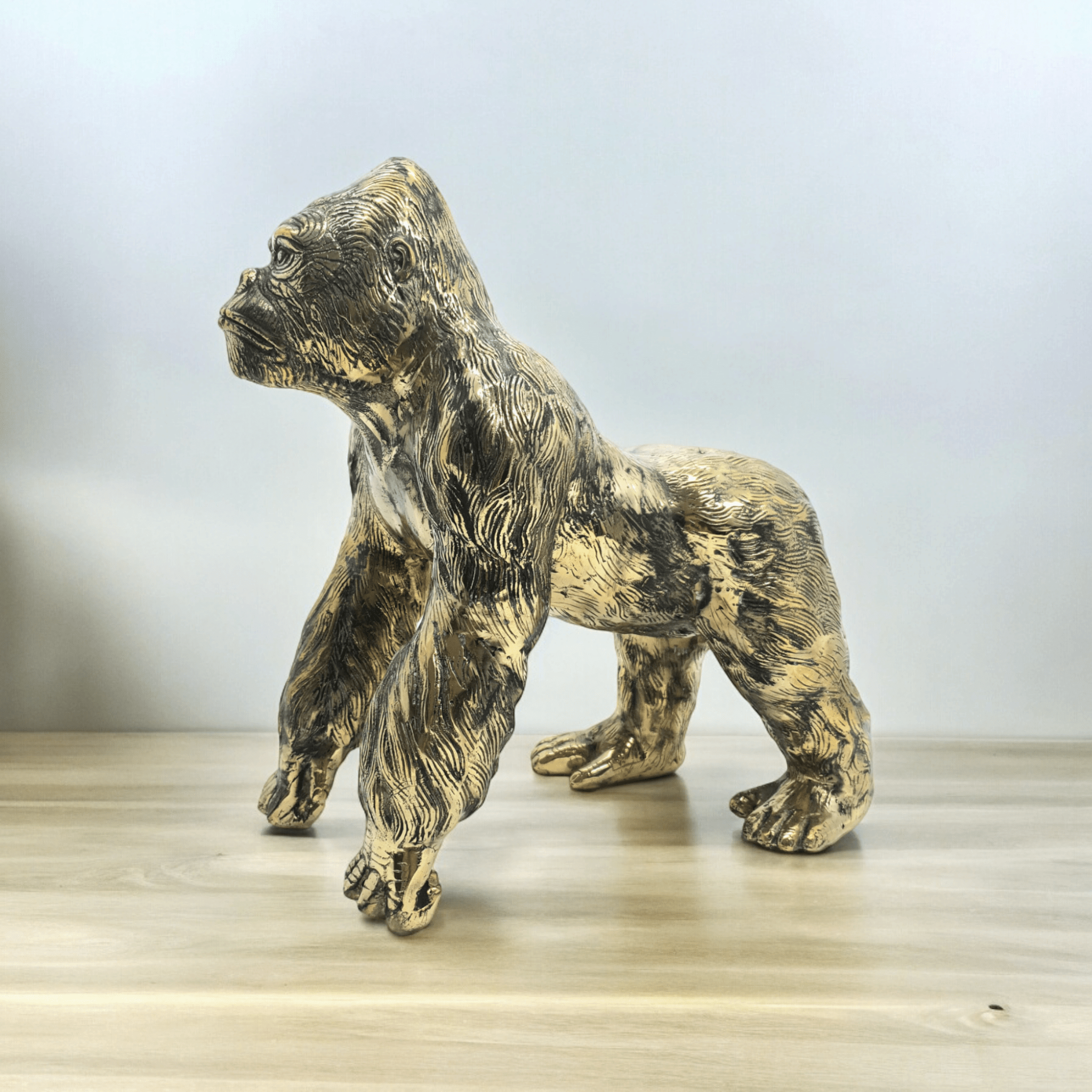 Witness the raw power and majestic beauty of our Gorilla Sculpture, meticulously crafted from bronze and finished with a radiant gold color. This sculpture showcases the gorilla’s strength and presence, with every detail, from its muscular form to its expressive face, reflecting the dedication and artistry of the maker. This piece stands as a testament to the gorilla’s grandeur and the artisan’s skill, making it a captivating focal point in any space.